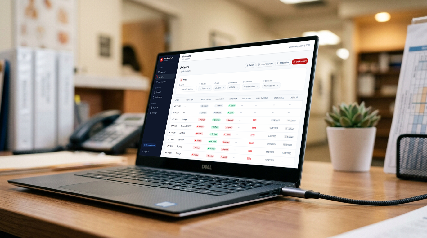 Most clinics don't identify at-risk patients until refills are 15–30 days overdue. By then, manual outreach rarely works — and staff spend hours calling patients who don't answer.